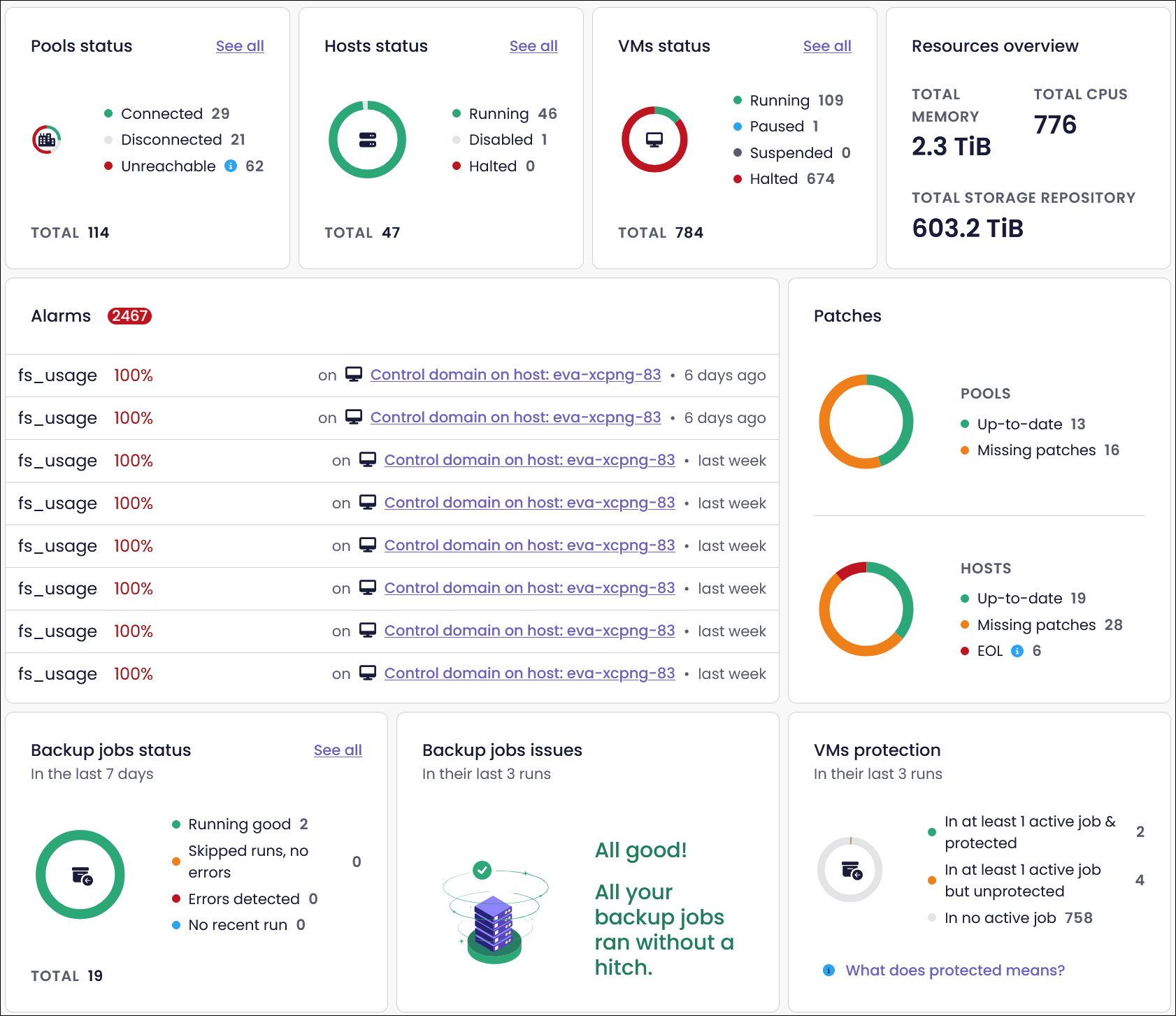 Xen Orchestra lets you monitor the usage of some or all of your resources by sending regular reports via email.