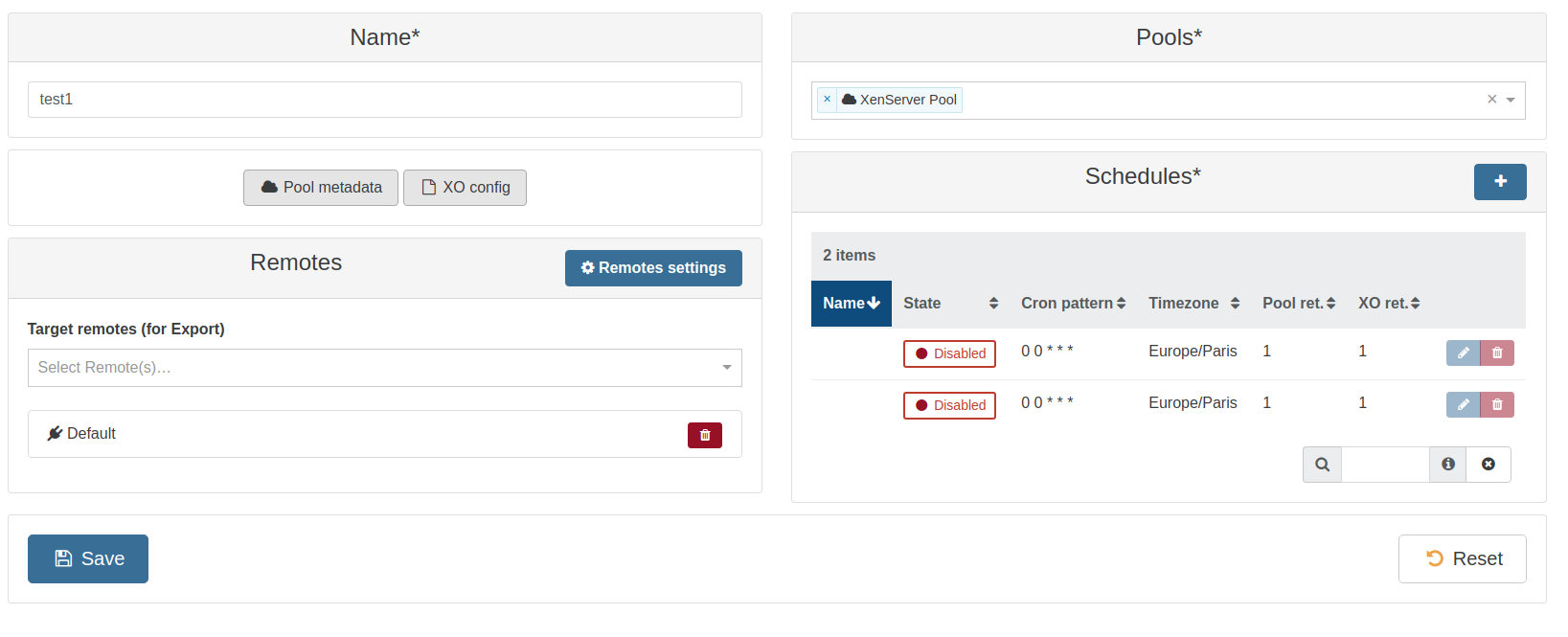 In Xen Orchestra, Metadata backup is divided into two different options: